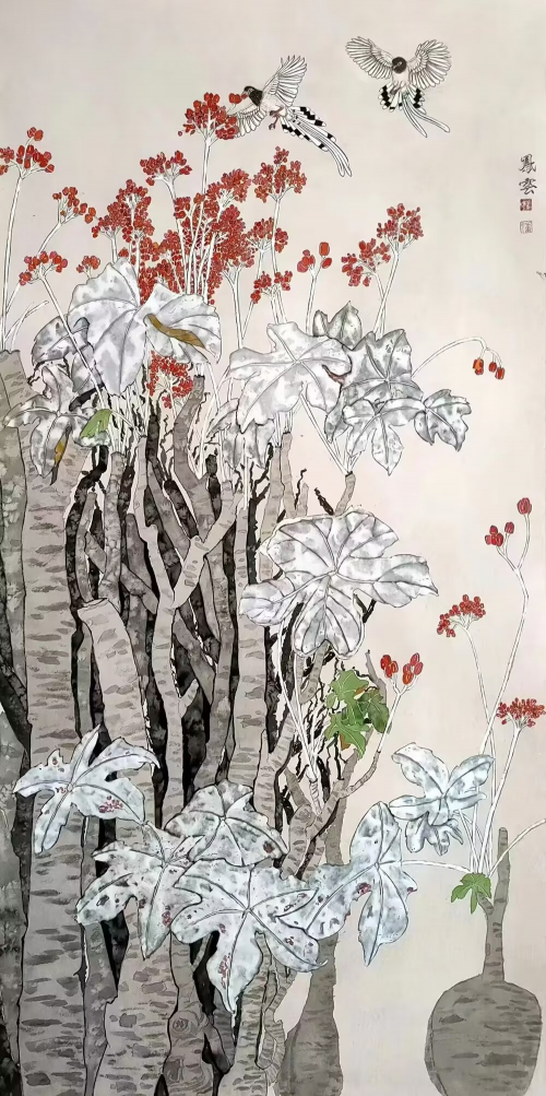 2024年,作品《荷塘溢醉》《苇塘悠然》《禅门静幽》《起舞弄清影》入选紫禁风华录,既古韵今风,翰墨传世纪,致敬故宫百年,书画艺术典藏。