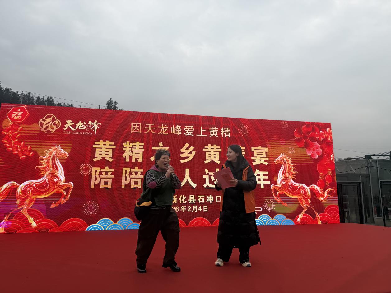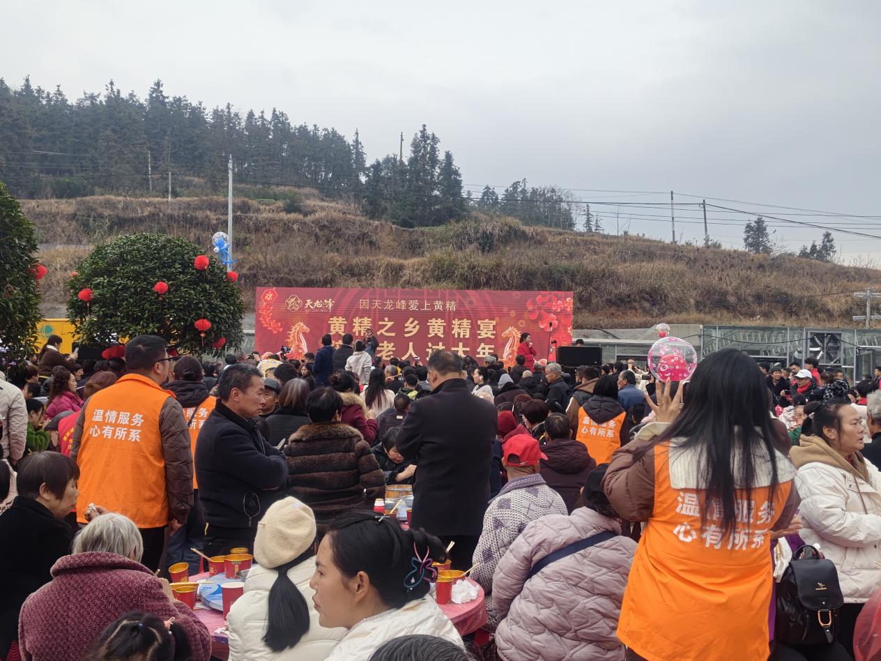 中午时分,新化天龙峰黄精产业园精心筹备的200桌黄精宴准时开席。以黄精入膳的多款菜品,既注重养生又兼顾口感,符合老年群体的饮食需求。宴席上,留守老人与游客围坐在一起畅快交谈,在美食中共同诉说团圆之情,圆了老人们的新春团聚梦。
