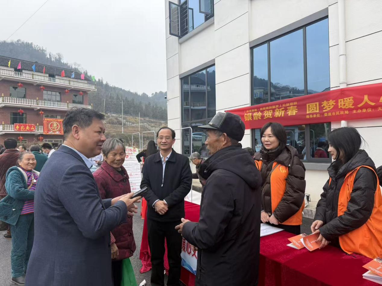2月4日,“银龄贺新春,圆梦暖人心”新春嘉年华暨敬老新春黄精宴活动,在湖南省新化石冲口镇潮水铺村温情开场。活动由娄底市民政局指导,新化天龙峰黄精产业园、娄底市温心家园社会工作服务中心联合主办,紧扣娄底老年友好城市建设理念,联动文艺汇演、便民服务等多元形式,全方位展现了民政部门在养老服务领域的引领作用,为留守老人和各地游客呈上了一场饱含关怀与年味的新春盛宴,彰显老年友好城市温度。